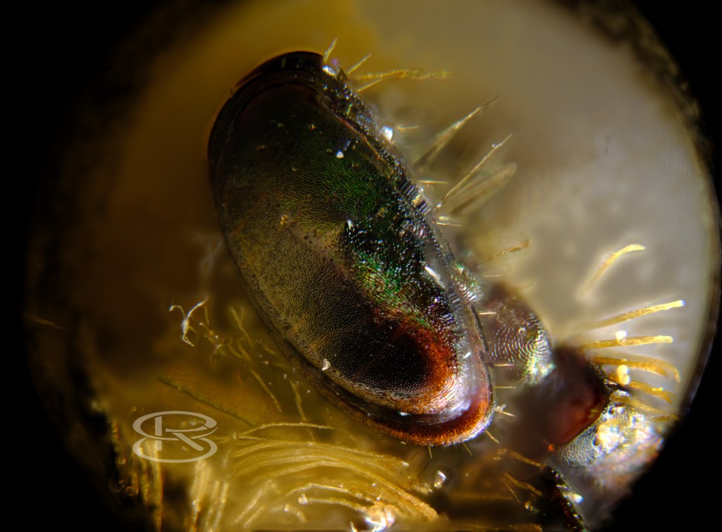 Rosenkäfer Bauchseite 25mm/2 Leitz Photar, Bl 2,8 mit Komura Telemore95; Fühlerspitze 20x und 40x Leitz Plan; Flügeldecke 20x Leitz Plan jeweils ohne Komura 2x
