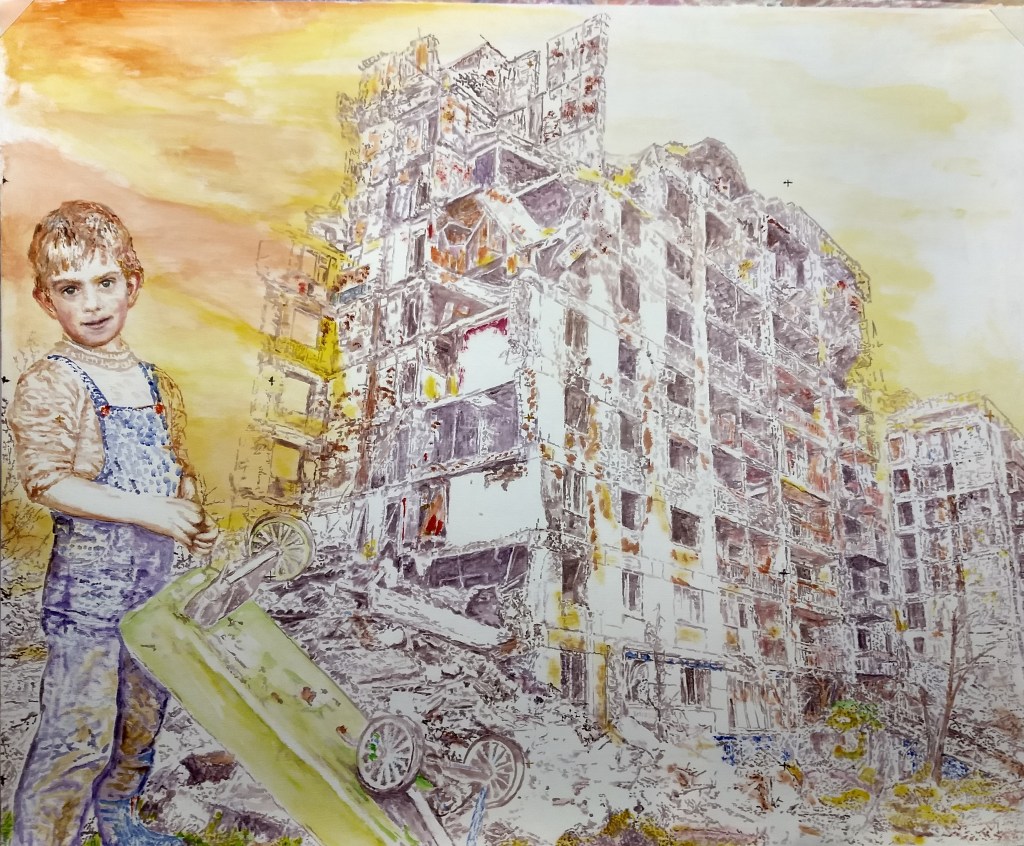 Iris 2, Stadien, in Arbeit, Acryl, 150x200cm