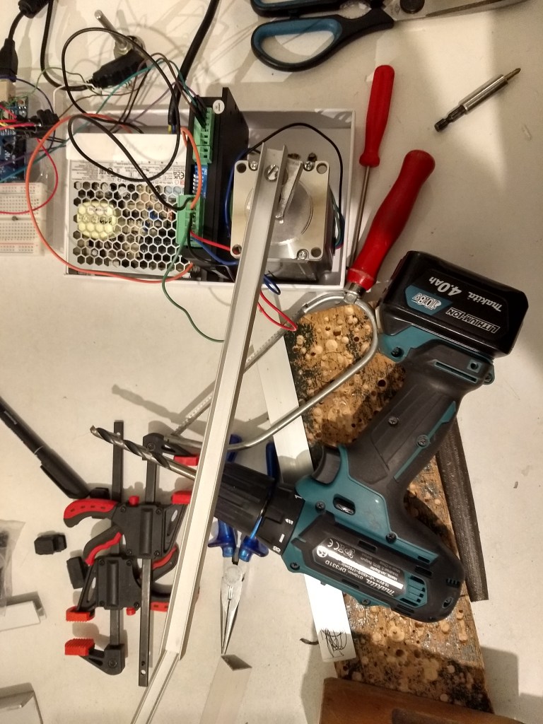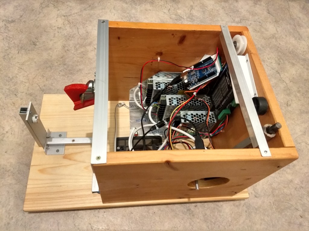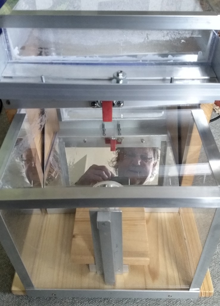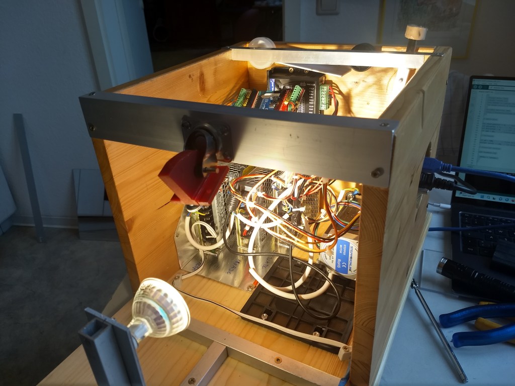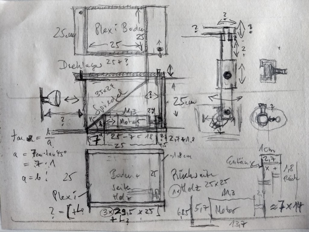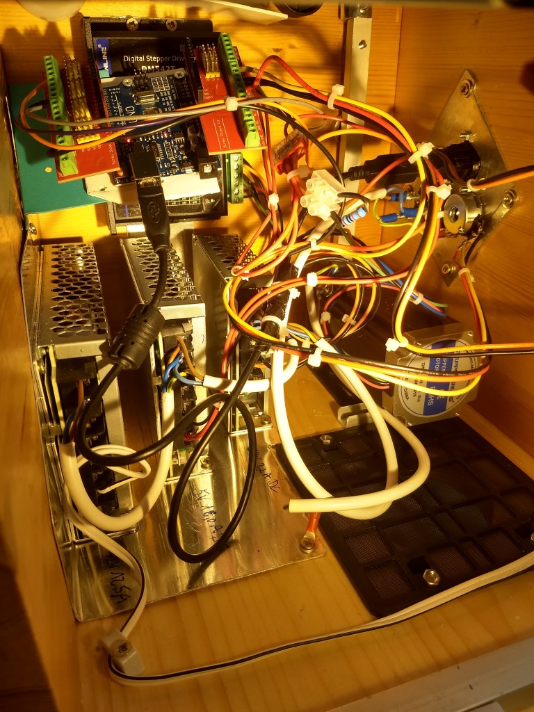 Meine zweite Zeitkristall-Lampe ist einerseits kompakter, besser zu handhaben und leiser als die erste (https://rolf-schreiber.de/basteleien-und-erfindungen/zeitkristall-lampe/). Andererseits ist sie „äußerlich“ schlicht und strenger aber „innerlich“ elektronisch komplizierter und komplexer nutzbar als meine erste Zeitkristall-Lampe I (2020). War die erste noch mit einem Akkuschrauber-Motor bestückt, der analog gesteuert wird, habe ich die zweite Zeitkristall-Lampe mit einem über einen Arduino-Uno in C++ programmierbaren Schrittmotor ausgerüstet. Über das Arduino-Board lässt sich der Zeitkristall theoretisch über einen Zufallsgenerator, Musik oder Sprache fernsteuern. Bislang stehen aber zunächst nur zwei Programm-Möglichkeiten zur Auswahl.