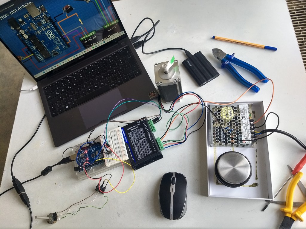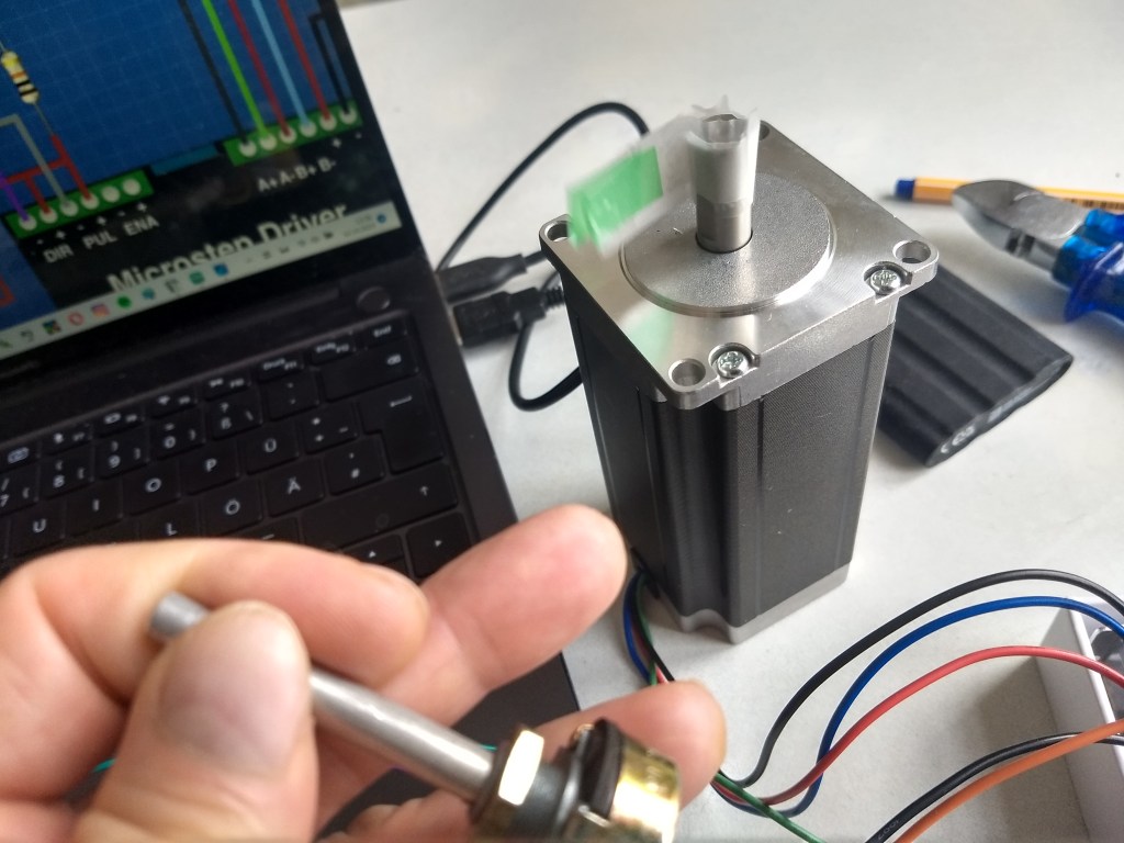 Meine Zeitkristall-Lampe I habe ich 2025 ebenfalls mit einem über einen Arduino-Uno in C++ programmierbaren Schrittmotor ausgerüstet.