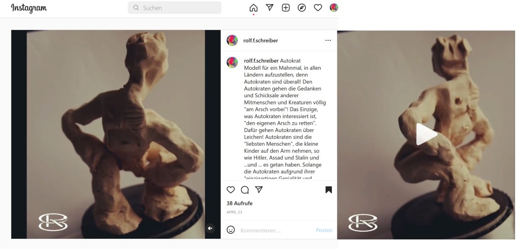 Plastiken Link zum Reel auf Instagram Tonfigur „Autokrat“ Link zum Reel auf Instagram „Jakobs Kampf am Jabbok“ Zurück zum Start-Menü