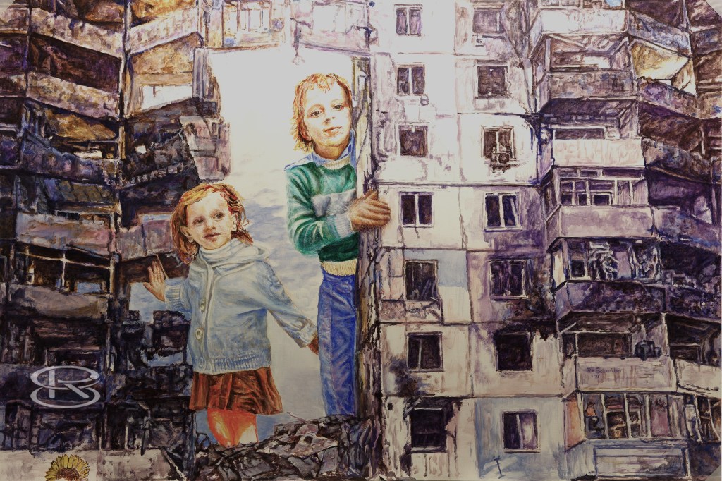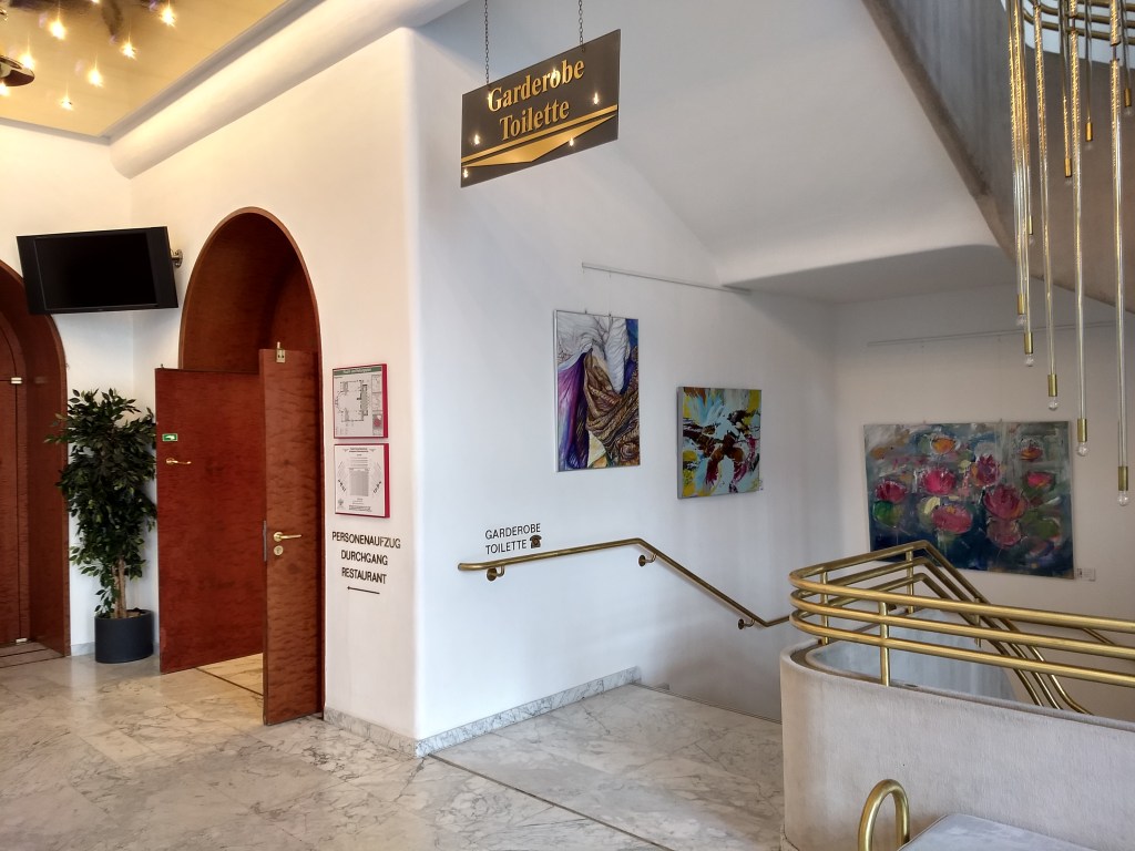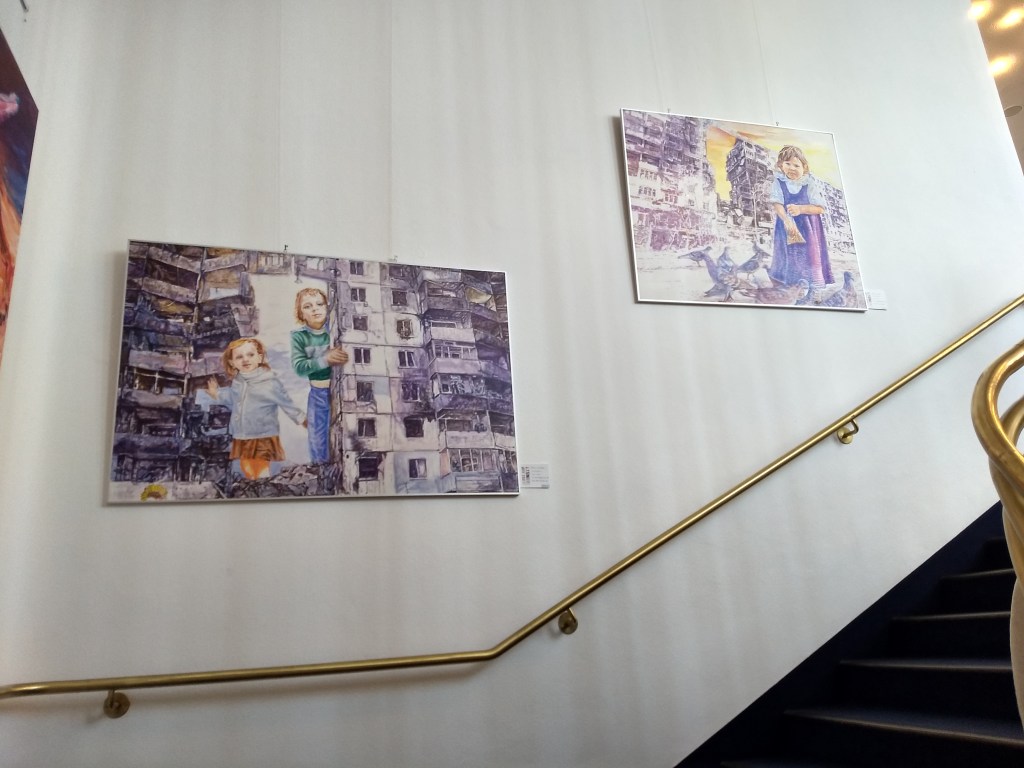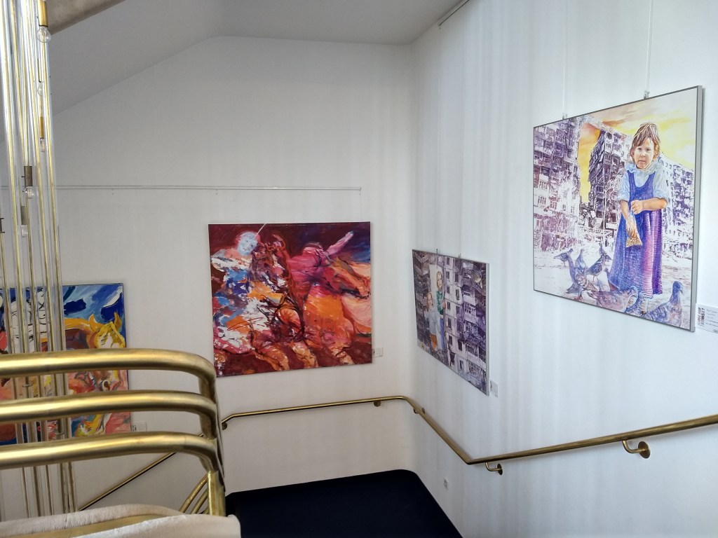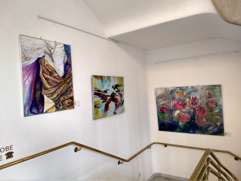 Saalbau-Galerie 2024, Neustadt/ Weinstraße 2024 waren zwei meiner Warchild-Bilder und ein Blütenmotiv „Iris 3“ im Saalbau in Neustadt a.d. Weinstraße zu sehen