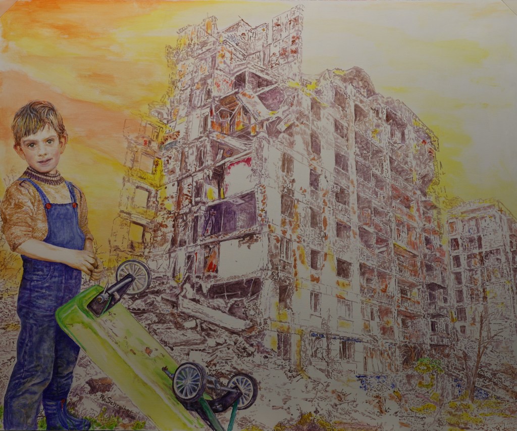 Meine Teilnahme an der Ausstellung des Kunstvereins Neustadt a.d. Weinstrasse, mit dem Acrylbild „Warchild 4“, 2023, 120x100cm